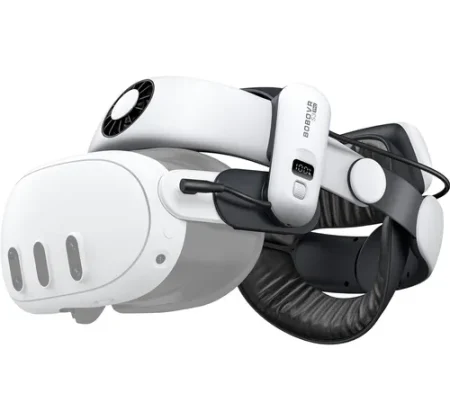 Battery headband with fast charging support designed for Meta Quest 3 and Quest 3S. Improves comfort, balance, and extends playtime during VR sessions.